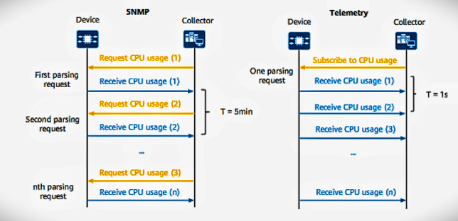 It sends network device operational data to the management system. All it needs is a single request specifying the data to be streamed, unlike SNMP, which requires multiple requests for the same purpose.