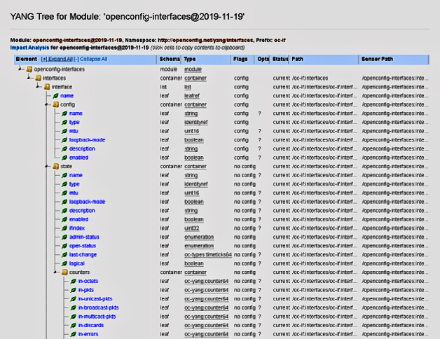 For instance, the following is a standard YANG model for the interface parameters developed by OpenConfig.