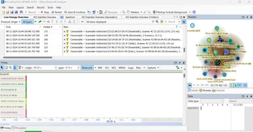 Ellisys Bluetooth Explorer helps with easy and rock-solid capture of any traffic on all channels.