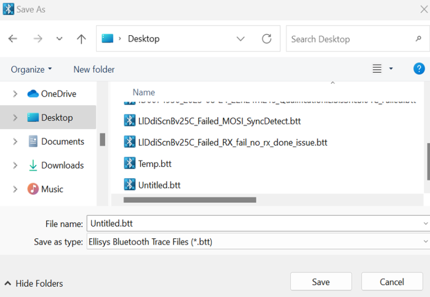 5. To save the frame capture by pressing “Stop Recording” from Main tool bar (or) go to Record > Stop Recording. Go to File > Save as and specify the file name on the respective folder location. The Saved file will have extension *.btt.