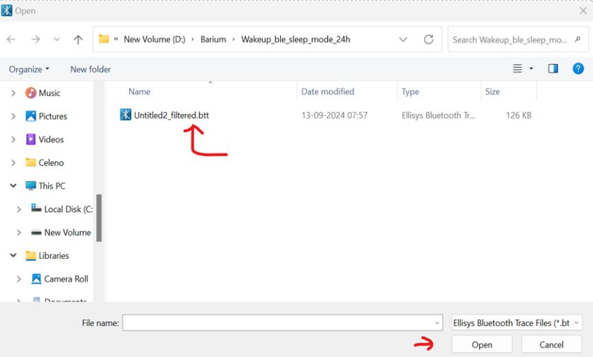 6. To open the previously saved capture, go to “File > Open” from menu bar and select the *.btt file from the folder location.