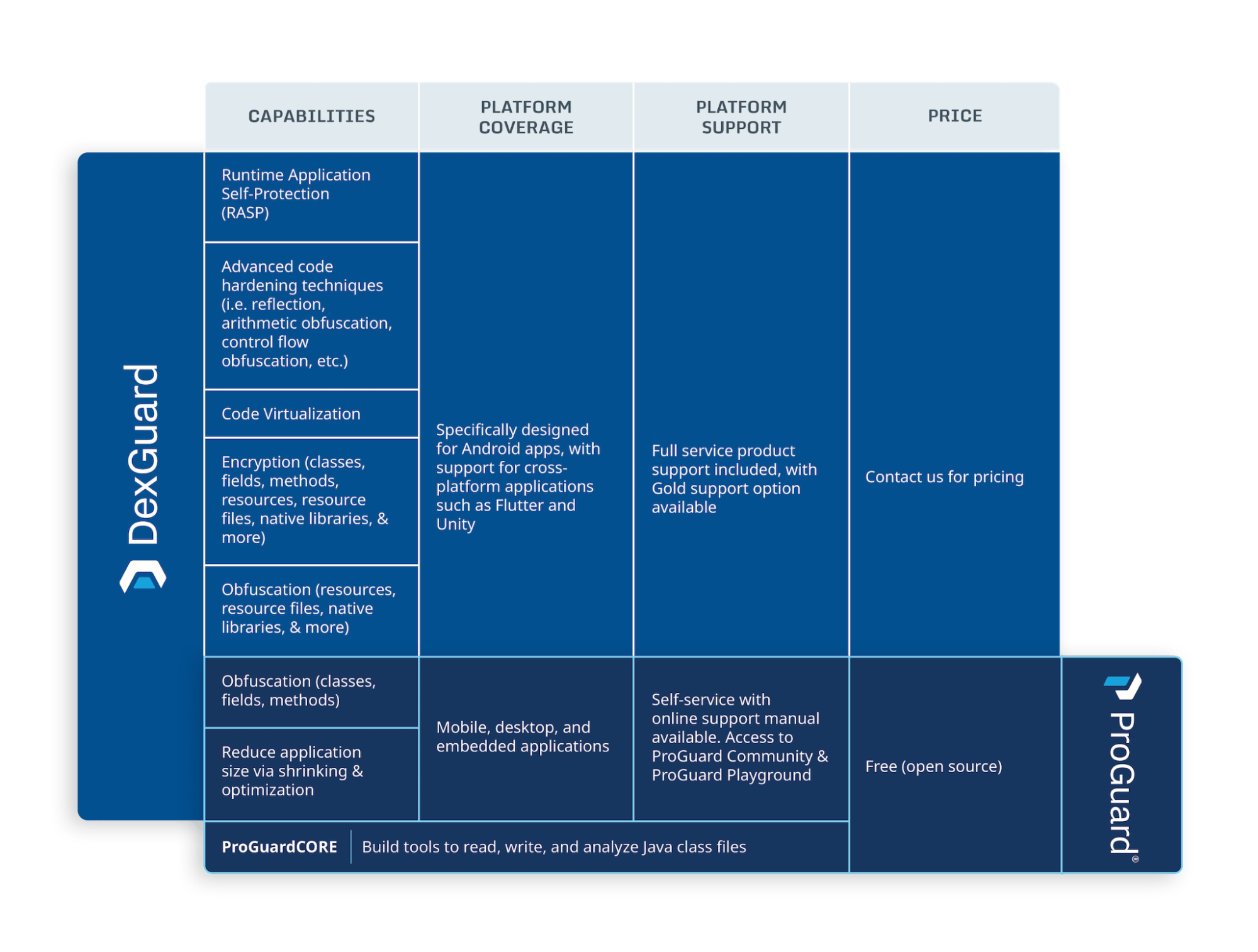 DexGuard provides multiple layers of source code encryption and obfuscation. As most of the code in a native mobile app is on the client side, mobile malware can easily track the bugs and vulnerabilities within the source code and design. Attackers generally repack renowned apps into rogue apps using reverse-engineering techniques. Then, they upload those apps into third-party app stores with the intent to attract unsuspecting users.