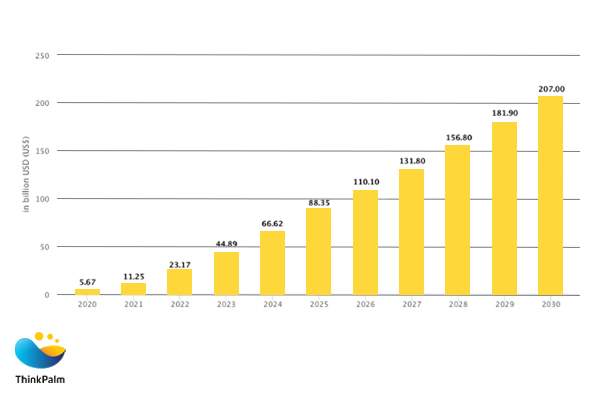 On top of all, the demand for generative AI products could bring in $280 billion in new software revenue, says Bloomberg Intelligence. Statista’s Insights on Generative AI market says it will reach $207 billion by 2030, growing annually at 24.40%.